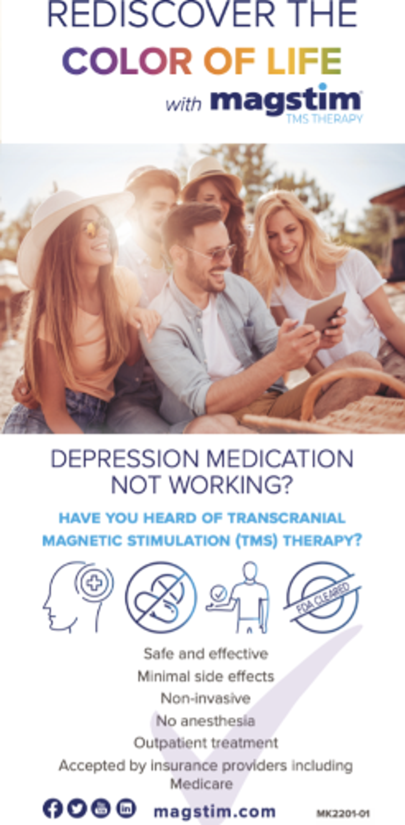 - Treatment Resistant Depression: when multiple medication trials and psychotherapy has been minimally effective, TMS is an option.